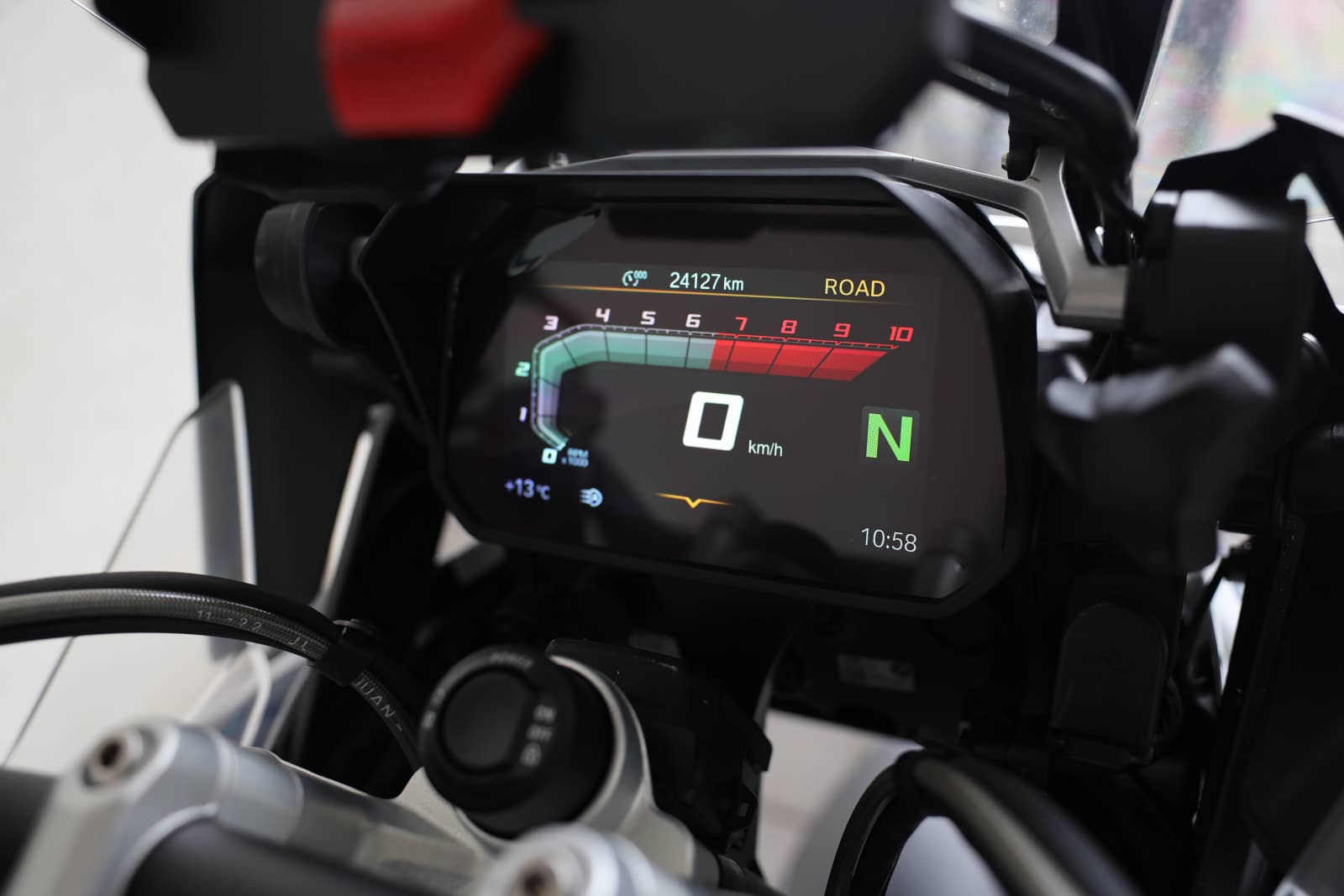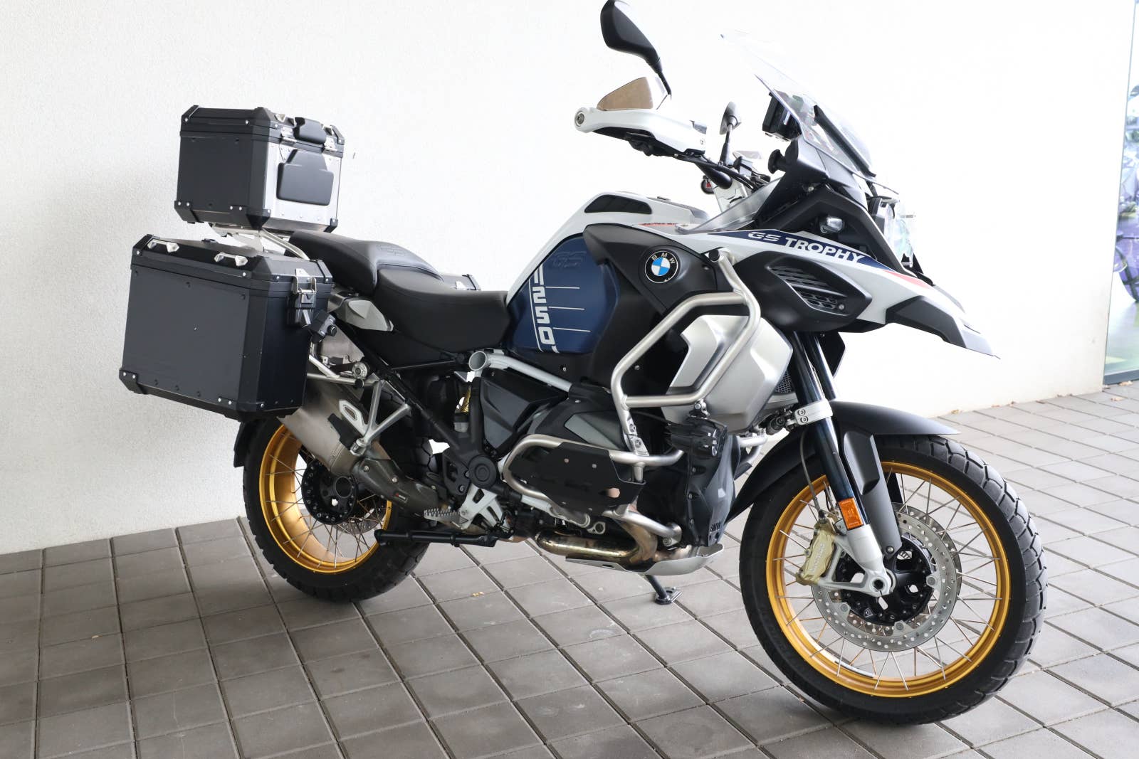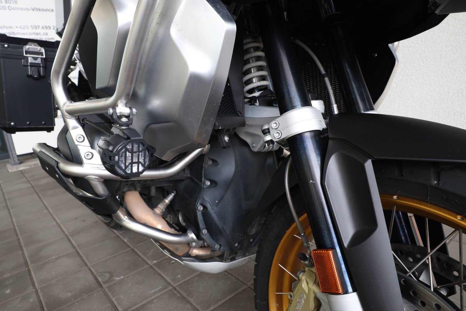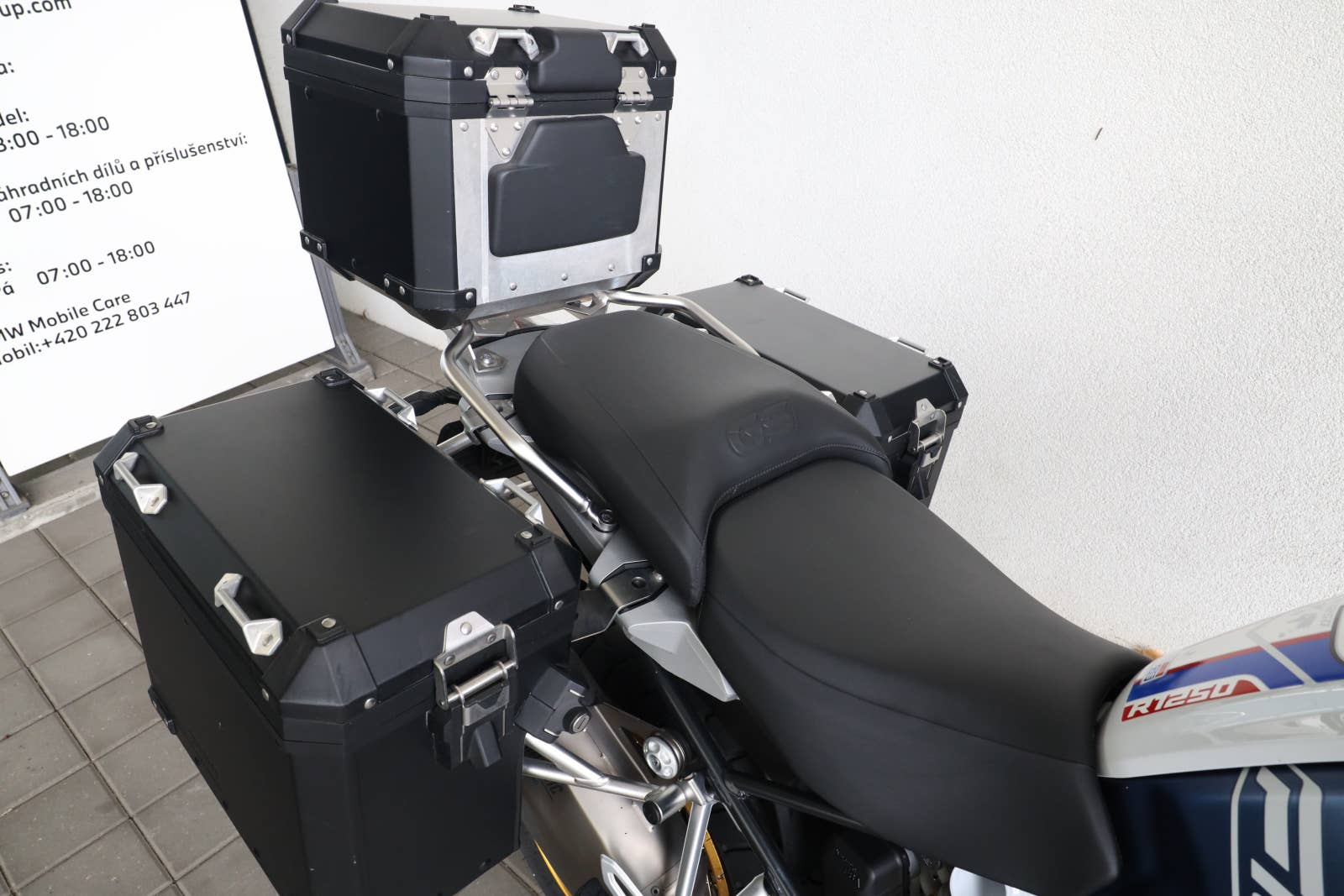 Motocykl po druhém majiteli, původ CarTec Ostrava, nyní po servise, 3x originální kufr potažen černou folii, tašky na rám a řídítka, kryty hlav válců, mlhovek, plná výbava kromě výhřevu sedačky, 5letá tovární záruka do dubna 2028, možný odpočet DPH